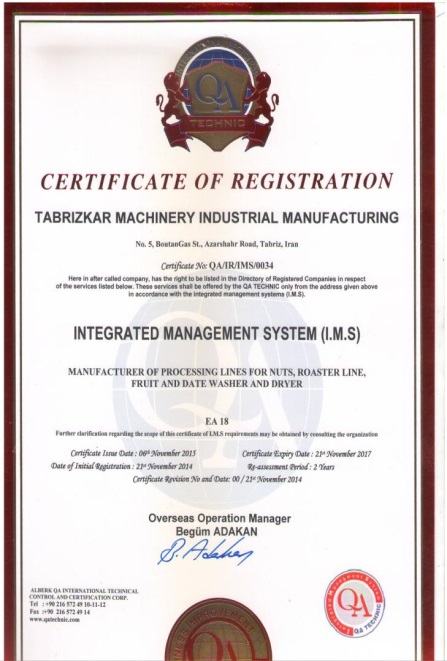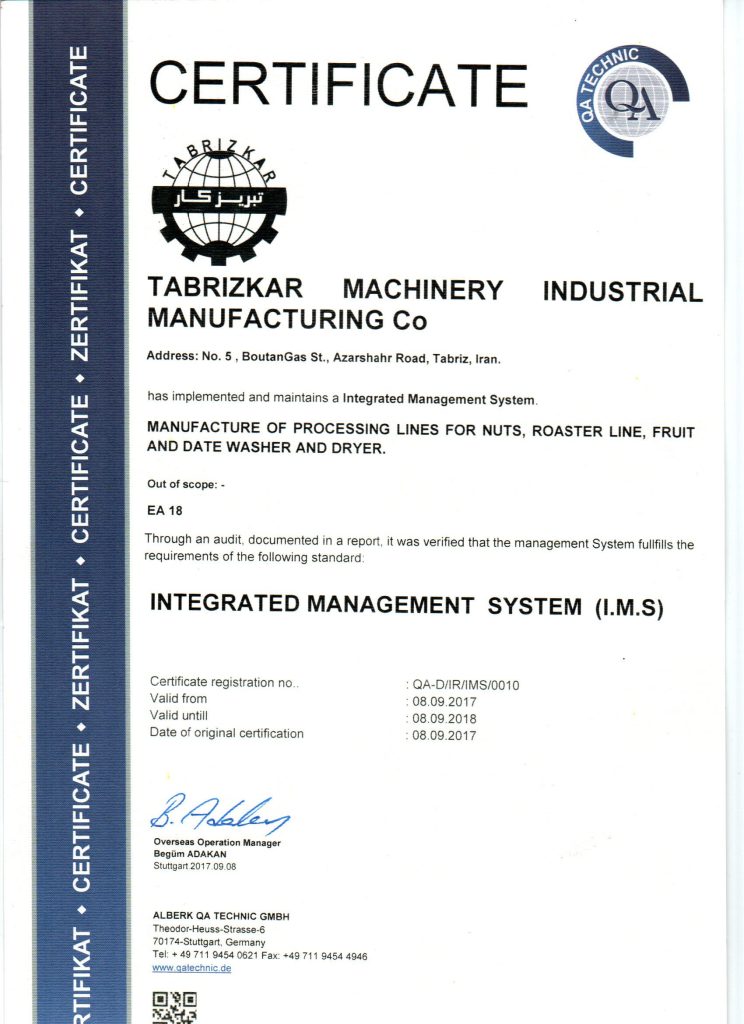Tabrizkar is a specialized manufacturer of industriaI pistachio and tree-nut processing machinery, deIivering proprietary and configurabIe solutions for Iarge-scale production.