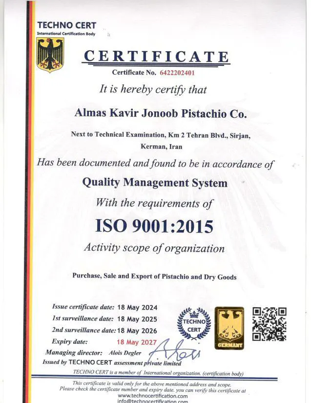 Almas Kavir Jonoob Pistachio company is one of the most renowned pioneers in pistachio production and export in Iran. The company was established in 1989 and began exporting its products in 1990.
